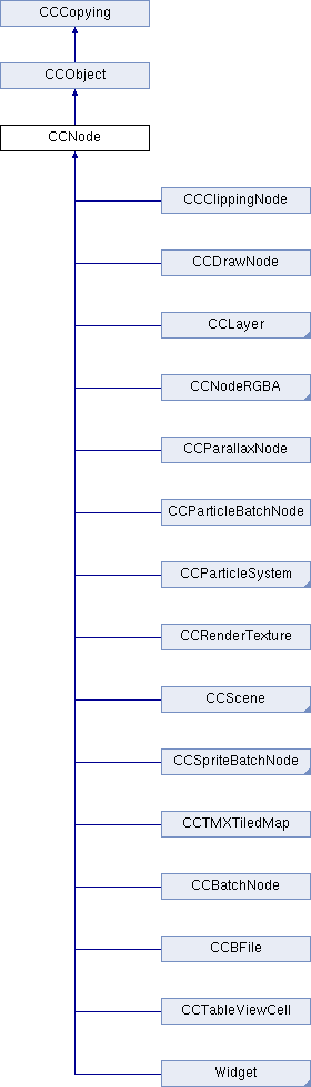 Anything that gets drawn or contains things that get drawn is a CCNode. The most popular CCNodes are: CCScene, CCLayer, CCSprite, CCMenu.