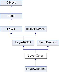 LayerColor is a subclass of Layer that implements the RGBAProtocol protocol. More...