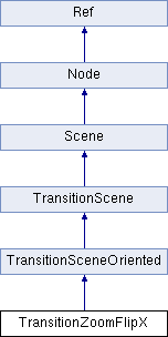TransitionZoomFlipX: Flips the screen horizontally doing a zoom out/in The front face is the outgoing scene and the back face is the incoming scene. More...