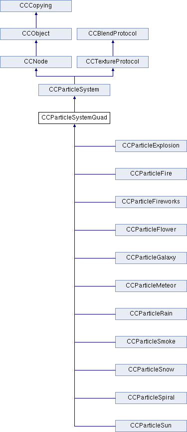 CCParticleSystem CCNode CCTextureProtocol CCObject CCBlendProtocol CCCopying CCParticleExplosion CCParticleFire CCParticleFireworks CCParticleFlower CCParticleGalaxy CCParticleMeteor CCParticleRain CCParticleSmoke CCParticleSnow CCParticleSpiral CCParticleSun