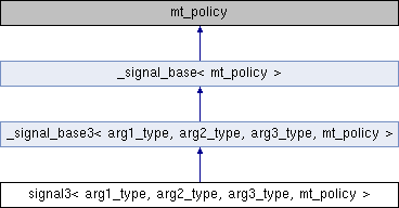 Inheritance diagram for signal3< arg1_type, arg2_type, arg3_type, mt_policy >: