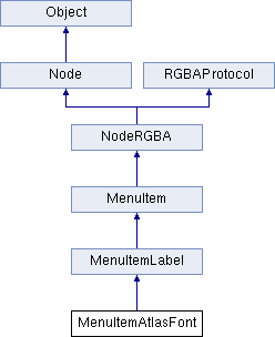 A MenuItemAtlasFont Helper class that creates a MenuItemLabel class with a LabelAtlas. More...