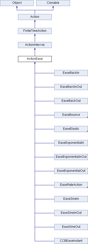 Reimplemented in EaseBackInOut, EaseBackOut, EaseBackIn, EaseBounceInOut, EaseBounceOut, EaseBounceIn, EaseElasticInOut, EaseElasticOut, EaseElasticIn, CCBEaseInstant, EaseSineInOut, EaseSineOut, EaseSineIn, EaseExponentialInOut, EaseExponentialOut, EaseExponentialIn, EaseInOut, EaseOut, and EaseIn.
