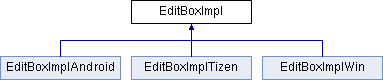 Implemented in EditBoxImplTizen, EditBoxImplAndroid, and EditBoxImplWin.