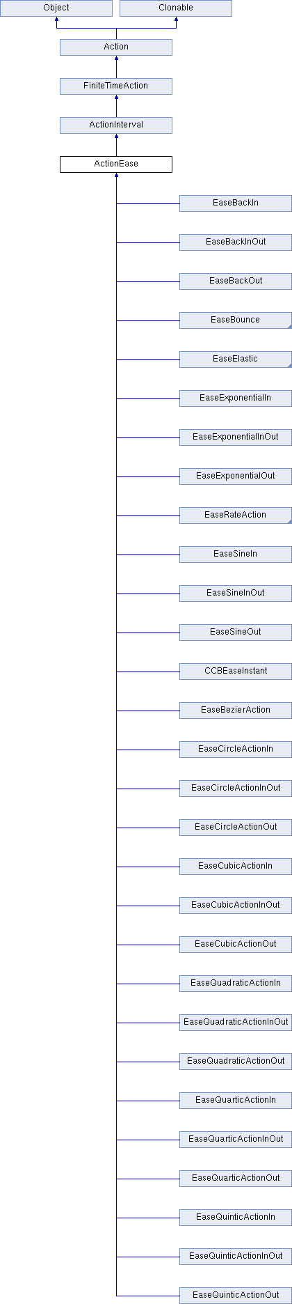 Implemented in EaseBackInOut, EaseBackOut, EaseBackIn, EaseBounceInOut, EaseBounceOut, EaseBounceIn, EaseBounce, EaseElasticInOut, EaseElasticOut, EaseCubicActionInOut, EaseCubicActionOut, EaseElasticIn, EaseCubicActionIn, EaseElastic, EaseCircleActionInOut, EaseSineInOut, EaseCircleActionOut, EaseSineOut, EaseCircleActionIn, CCBEaseInstant, EaseSineIn, EaseQuinticActionInOut, EaseExponentialInOut, EaseQuinticActionOut, EaseExponentialOut, EaseQuinticActionIn, EaseExponentialIn, EaseQuarticActionInOut, EaseQuarticActionOut, EaseInOut, EaseQuarticActionIn, EaseOut, EaseQuadraticActionInOut, EaseIn, EaseQuadraticActionOut, EaseRateAction, EaseQuadraticActionIn, and EaseBezierAction.
