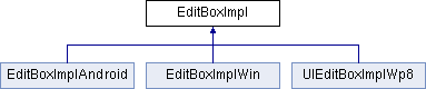 Implemented in EditBoxImplAndroid, EditBoxImplWin, and UIEditBoxImplWp8.