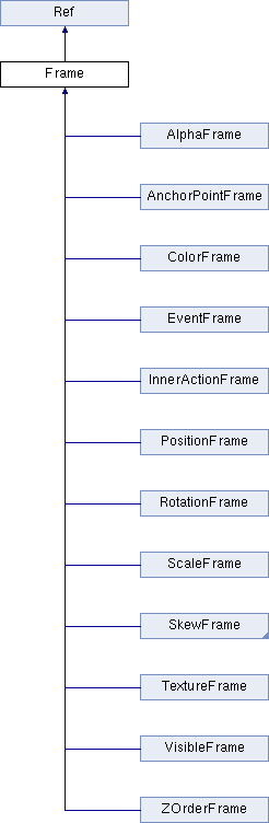 Implemented in ZOrderFrame, EventFrame, AlphaFrame, ColorFrame, InnerActionFrame, AnchorPointFrame, ScaleFrame, PositionFrame, RotationSkewFrame, SkewFrame, RotationFrame, TextureFrame, and VisibleFrame.